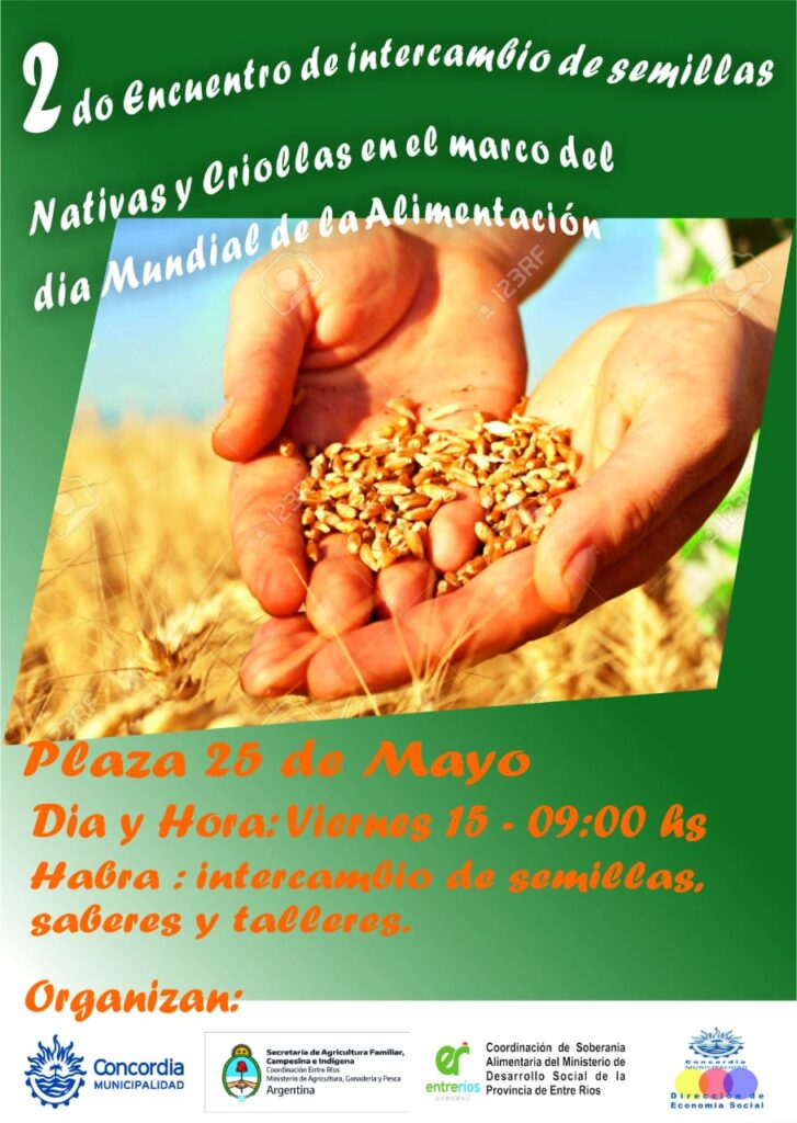 Este viernes 15 de octubre se va a realizar en el Centro de Convenciones, el 2° Encuentro de Intercambio de Semillas Nativas y Criollas en el marco del Día Mundial de la Alimentación. La actividad es organizada por la Dirección de Economía Social de la Municipalidad, y participarán productores del Departamento Concordia y alrededores.