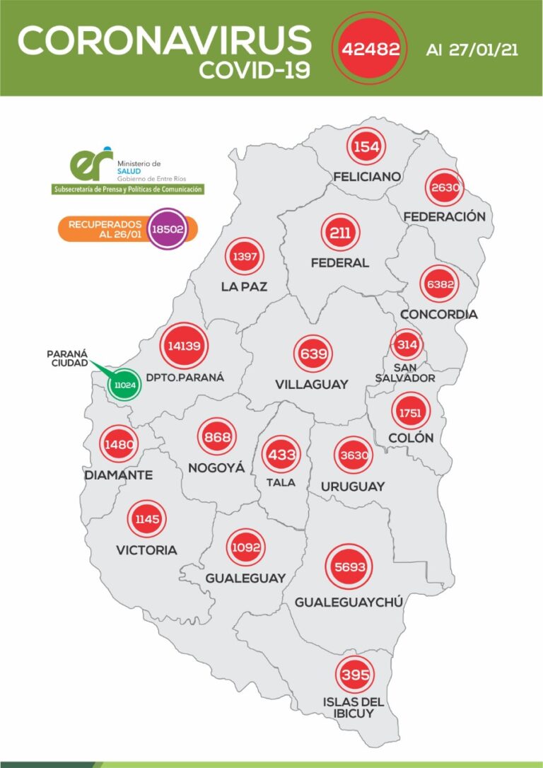 Baja general de los casos de coronavirus en Entre Ríos: este miércoles se registraron 333 Editor 27 enero, 2021
