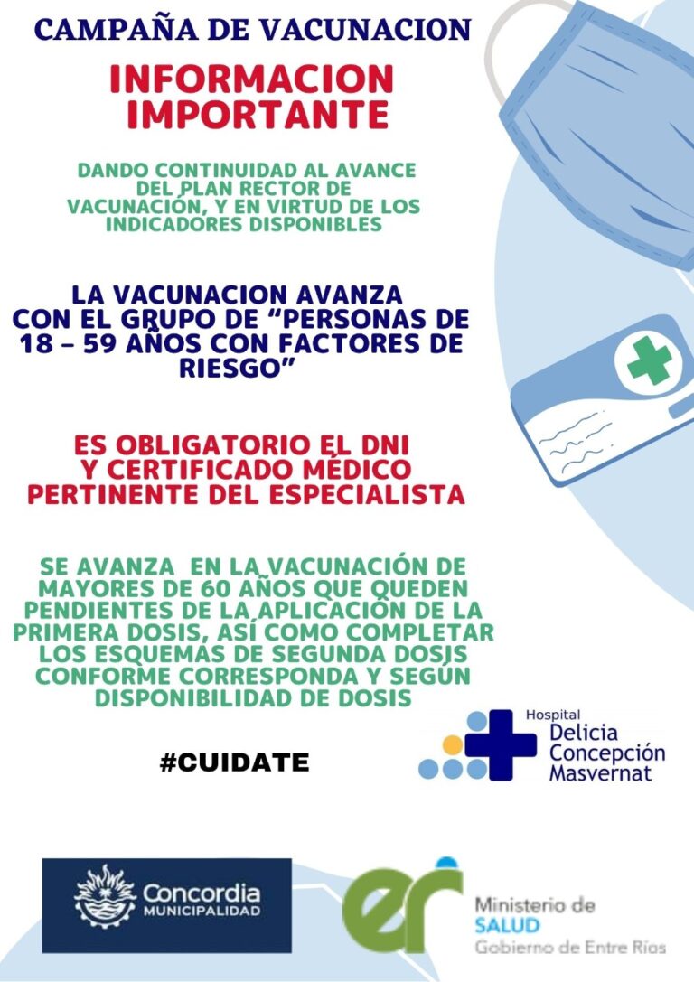 Se avanza en la vacunación de mayores de 60 años que queden pendientes y personas de 18 – 59 años con factores de riesgo, con certificado médico Editor 17 mayo, 2021
