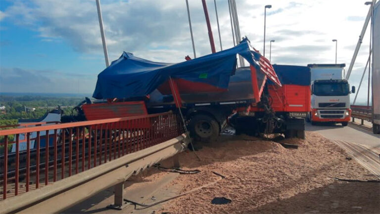 Ruta 12: Camión chocó contra la baranda del puente y su cabina quedó colgando al vacío Editor 3 febrero, 2023