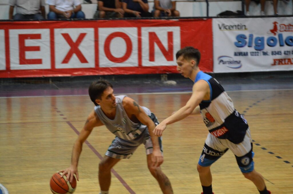 El segundo cuarto fue el más parejo a tal punto que el parcial fue 20 a 20. Truffa sumaba dos triples más para el anfitrión y llegaba a 16 puntos en su cuenta personal. Facundo Ortiz y Obregón también metían de larga distancia. En la visita el goleo era más repartido. Buen ingreso de Abel Pascual con cinco tantos y tramos importantes de ese segmento para Novello y Frontera aportando cuatro puntos cada uno. Los dirigidos por Gastón Narbay se iban al descanso largo triunfando por 44 a 35.
