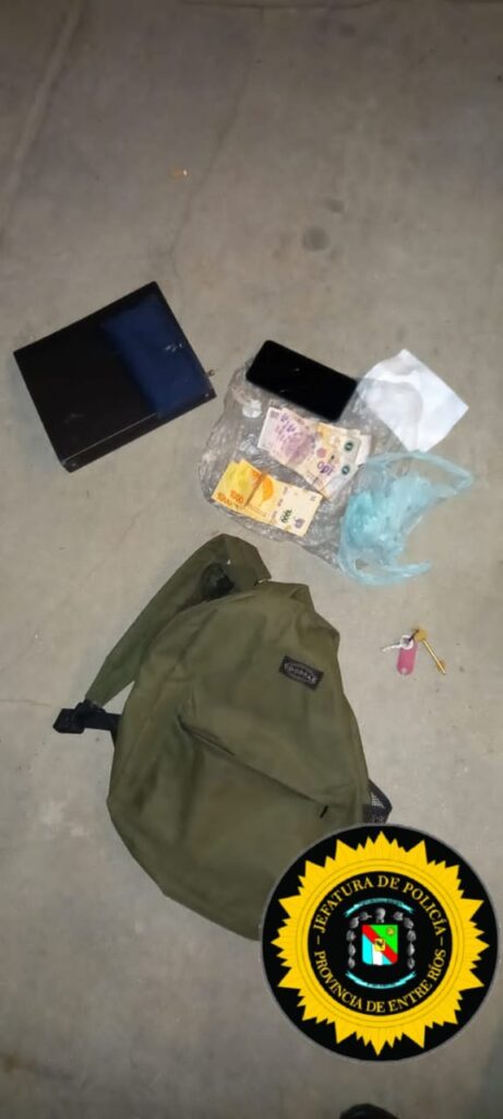 Luego al observar que el conductor del rodado de menor porte, comienza a ponerse nervioso e intenta tomar su moto y retirarse del lugar, proceden a solicitarle la documentación de la misma y el sujeto al abrir la mochila notan dentro, bolsas y a la vista un envoltorio con polvo blanco.