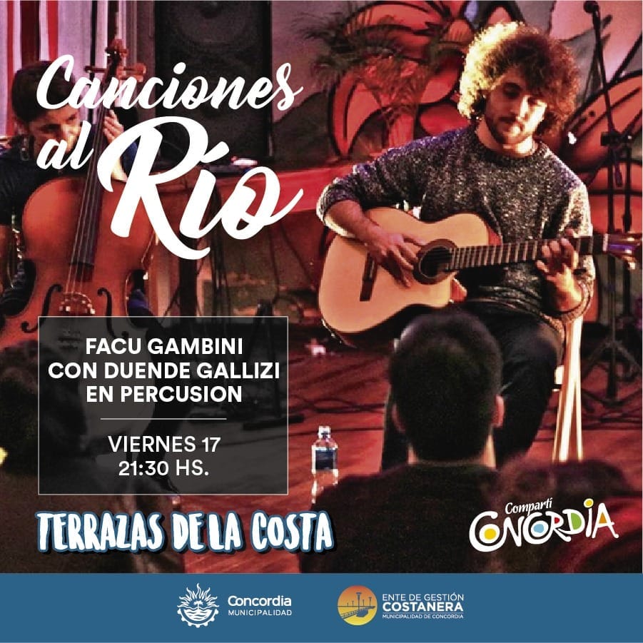 El viernes 17 darán comienzo los acústicos con la actuación de Facundo Gambini, cantautor concordiense y artistas invitados. El 24 de enero, Gabriel Balderrain y el 31 Gonzalo Zabala.