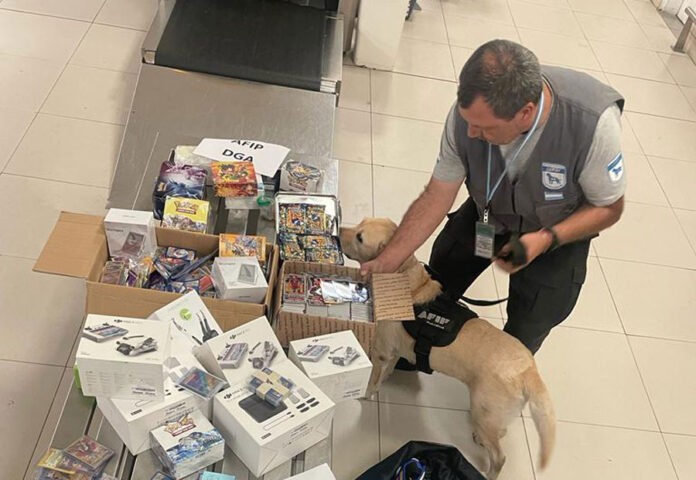 Asimismo, la inspección también encontró una exorbitante cantidad de cartas de Pokémon sin abrir: 12 mazos Pokémon TCG Crown Zenith Elite Trainer Box; 3 cajas Silver Tempest, con 190 cartas cada una; 2 cajas Sword & Shield Evolving Skies, 4 cajas V Star Pokémon; 2 cajas conteniendo nada menos que 3.112 cartas, 1 caja de cartas Chilling Reign, 1 caja de cartas Steam Siege, 3 cajas metálicas con 72 sobres de cartas Trading Card Game Pokémon y finalmente, 1 caja de cartas Dragon Ball.