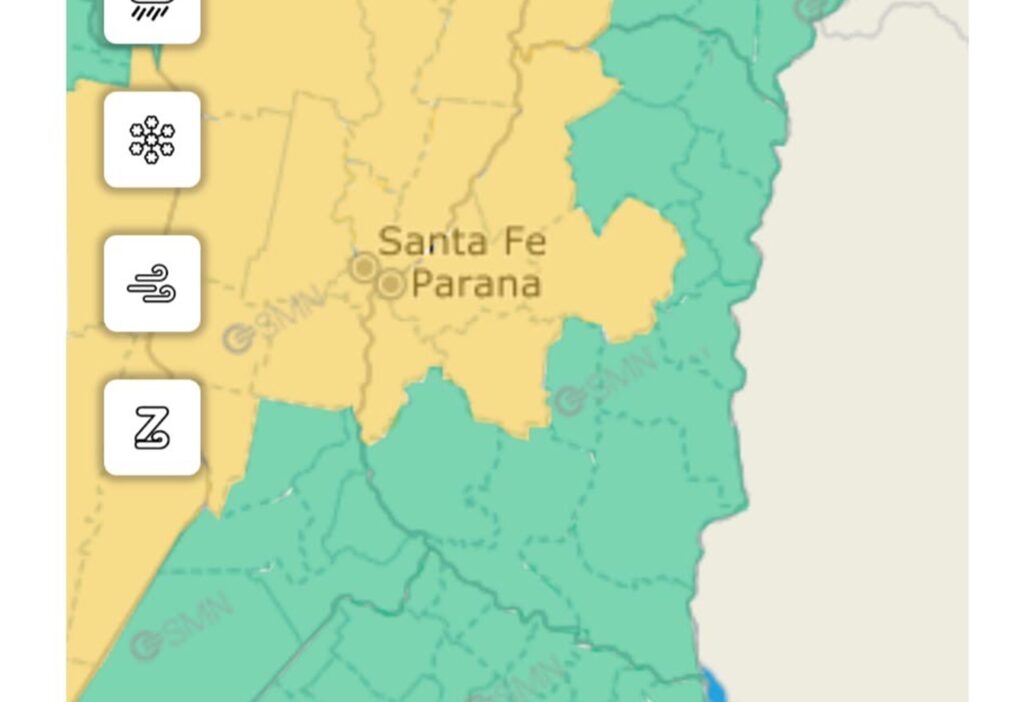 Desde el área de Defensa Civil de la provincia informaron que el Servicio Meteorológico Nacional emitió un alerta amarilla para este sábado por la noche, en los departamentos La Paz, Paraná, Villaguay, Diamante, Nogoyá y Victoria.