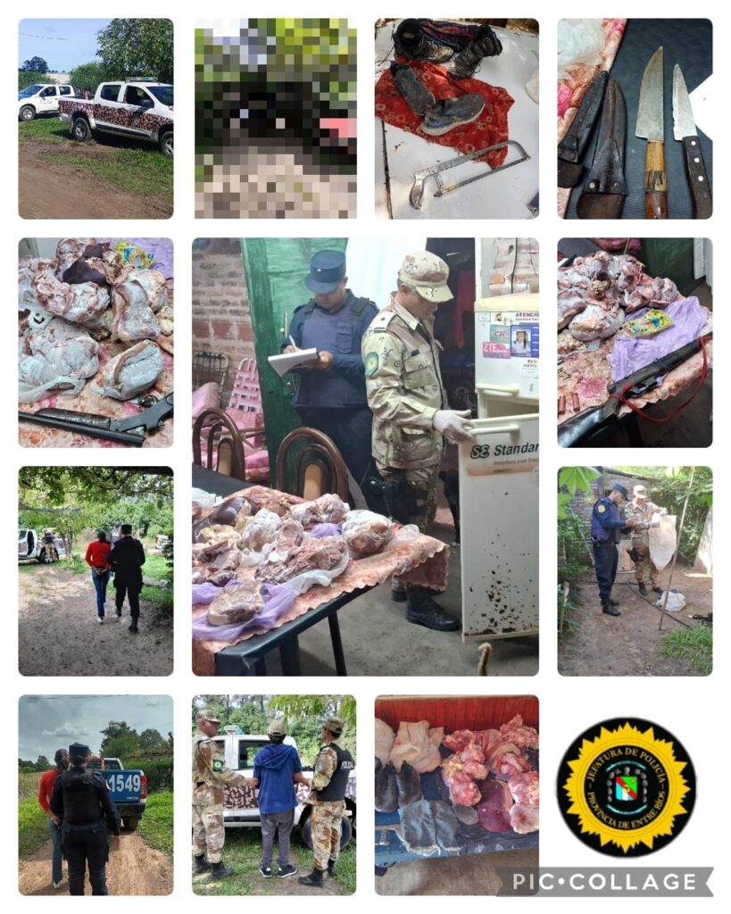 El resultado del procedimiento fue positivo, logrando el secuestro de elementos de interés para la causa: prendas de vestir, 01 sierra, 02 bolsas de plastillera de color blanco, 30kg totales de carne vacuna, de cortes varios; 02 cuchillos con vaina; 01 rifle automático calibre 22, con cargador y 06 proyectiles calibre 22 corto y 01 calibre 22 largo; 01 escopeta calibre 16.