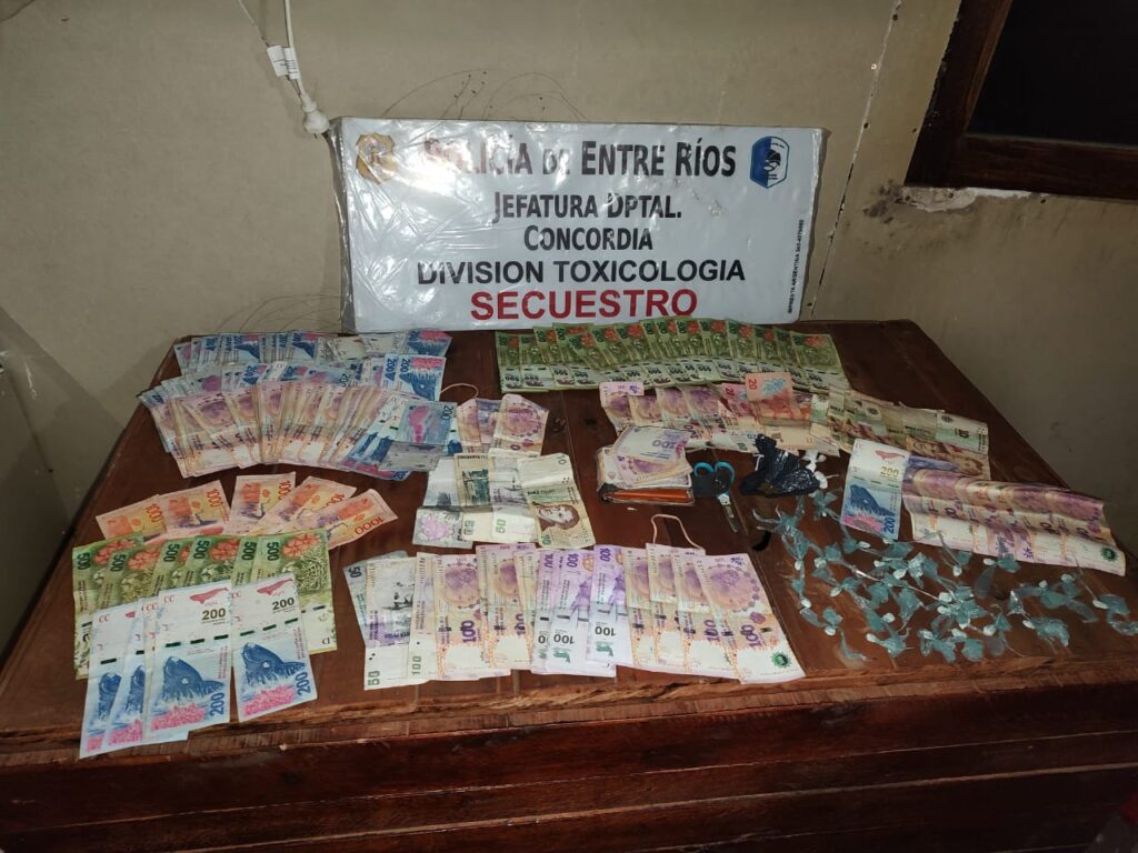 Personal policial de la División Toxicología, dependiente de la Jefatura Departamental Concordia, dio cumplimiento a seis Órdenes de Allanamientos en diferentes domicilios ubicados en Jurisdicción de Comisaría Séptima. Como resultado de los mismos, en primer lugar, se identificaron a varias personas entre mujeres y varones. Se procedió al Secuestro de varios envoltorios con Clorhidrato de Cocaína y Cannabis Sativa, listos para su comercialización, elementos de corte y fraccionamiento. También se procedió al Secuestro de más de $ 900.000 pesos en moneda argentina como así también Dólares y Pesos Uruguayos. Otros elementos Secuestrados fueron (02) dos autos marca PEUGEOT 207, (01) Moto marca GILERA Smash (con pedido de secuestro); varios teléfonos celulares y electrodomésticos varios. En el marco de esta causa y con la coordinación de la Unidad Fiscal Especializada en Narcomenudeo, quedando Detenidas cinco personas (3 varones y 2 mujeres); colaboraron en los Procedimientos Personal Policial de las Secciones Grupos Especiales de Concordia, San Salvador, Colón, Federal y Federación; asimismo funcionarios de las Divisiones de Toxicología de las Jefaturas Departamentales antes mencionadas.
