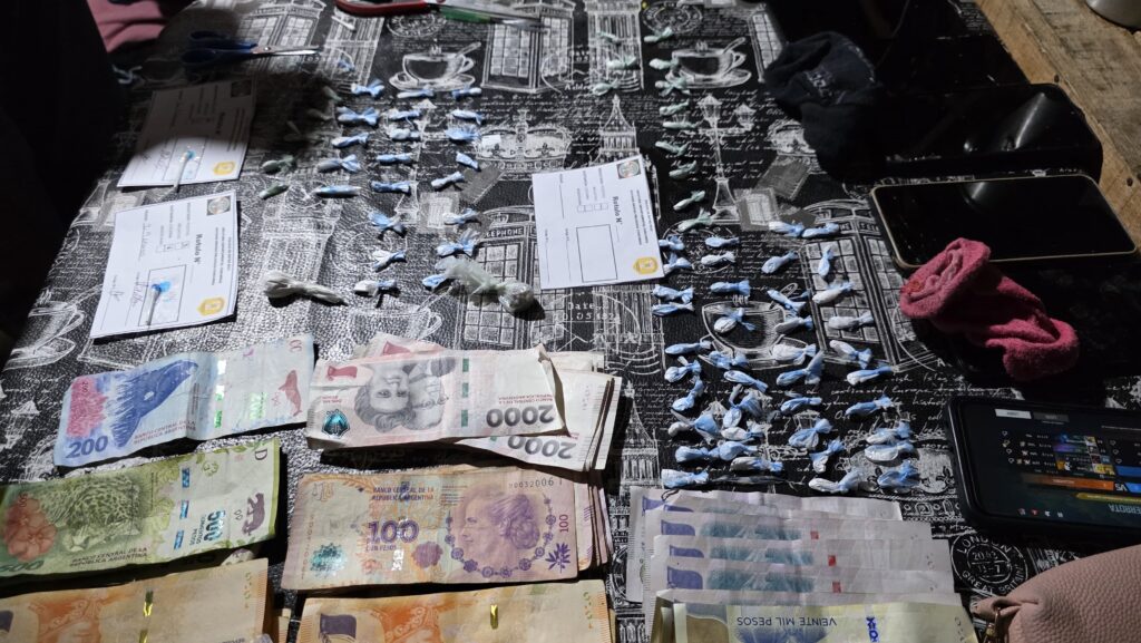 Los procedimientos dieron resultados positivos, secuestrando un total de (78) bolsitas de Clorhidrato de Cocaína y un trozo más grande en una bolsita de nylon de Clorhidrato de Cocaína, con un peso total de 60,9 gramos , además de la suma de $175.900 pesos argentinos y (02) teléfonos celulares..