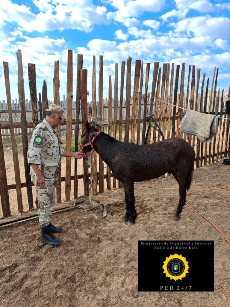 En inmediaciones de Calle 2 de abril y Nogueira, se notifica a una femenina; procediendo al secuestro de 2 Media Res de Ovino, 3 Cueros Ovinos, 2 Nylon, (06) Pinzas y Tijeras Varias, 1 Cartucho 9mm. Marca “FLB”, (03) Riendas y Cinchas de Caballos Varías, (01) par de botas para el barro color amarillas utilizadas por el autor las cuales quedaron registradas en las filmaciones, y (01) Caballo Zaino Herrado.