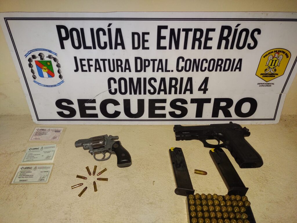 Se allanó una vivienda de calle Pte. Illia al 300, procediendo a la notificación de la medida a la propietaria de 74 años, arrojando el procedimiento resultado positivo y secuestraron un revolver calibre 22 largol, con tambor cargado con 10 municiones, una pistola 9mm, dos cargadores de pistola 9mm, una caja de municiones con 47 cartuchos.