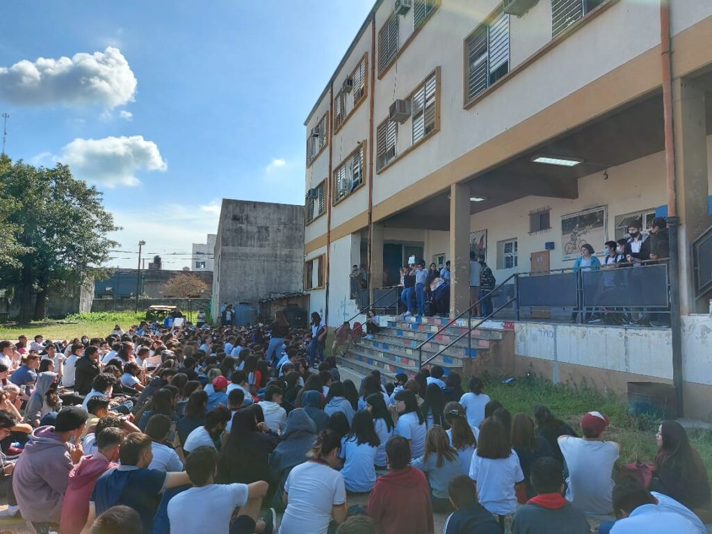 Alumnos y docentes de la Escuela Normal Superior N•15 “Domingo Faustino Sarmiento” realizan sentada por desacuerdos, con el equipo directivo, ante imposiciones en el acuerdo escolar de convivencia que avasallan Derechos estudiantiles.