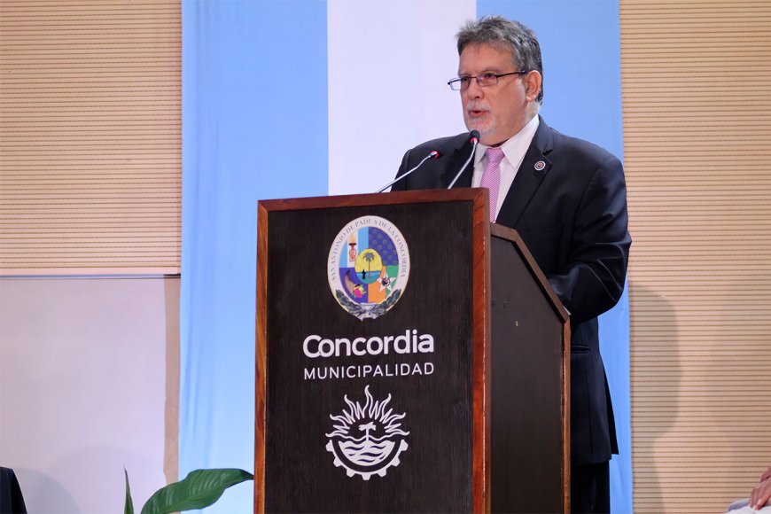 Con la presencia del presidente de la Delegación Argentina de CARU José Eduardo Lauritto, el intendente de Concepción del Uruguay Martín Oliva, Intendentes del Departamento Concordia, representantes de las fuerzas de seguridad, del comercio, el turismo, la industria y la cultura, y el mensaje de salutación enviados por el gobernador Gustavo Bordet, el administrador del Enohsa Enrique Cresto y el intendente de Paraná Adán Bahl, se realizó el acto previsto en la Constitución, ante un Salón colmado de asistentes.