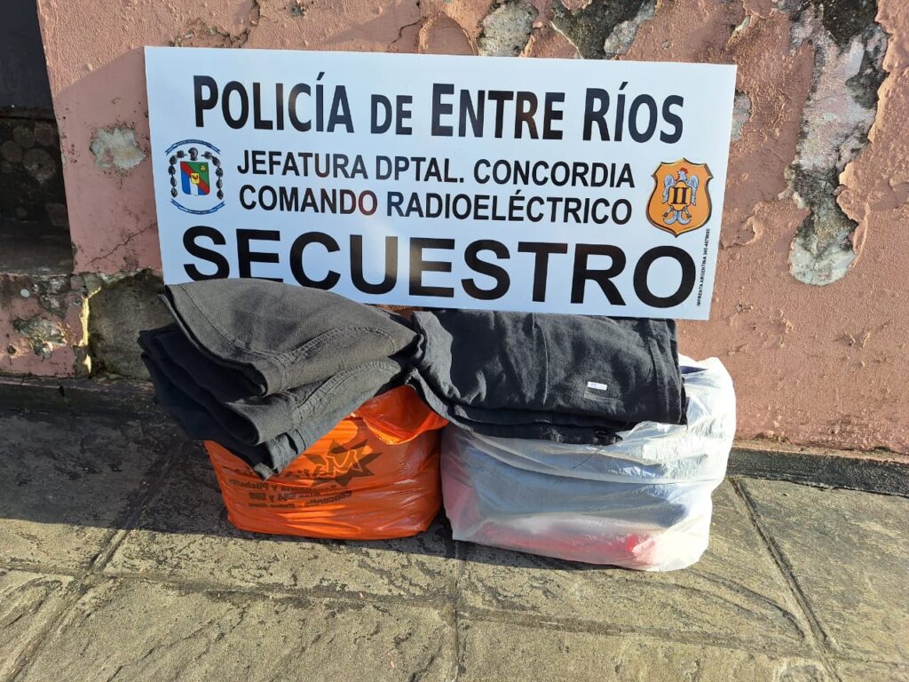 En la mañana de hoy, siendo las 07 hs. aproximadamente, el personal del Comando Radioeléctrico realizaba una patrulla preventiva, cuando en determinado momento en la intersección de Calles Andrade y Alvear, observan a un masculino transportando unas bolsas con prendas de vestir en su interior.