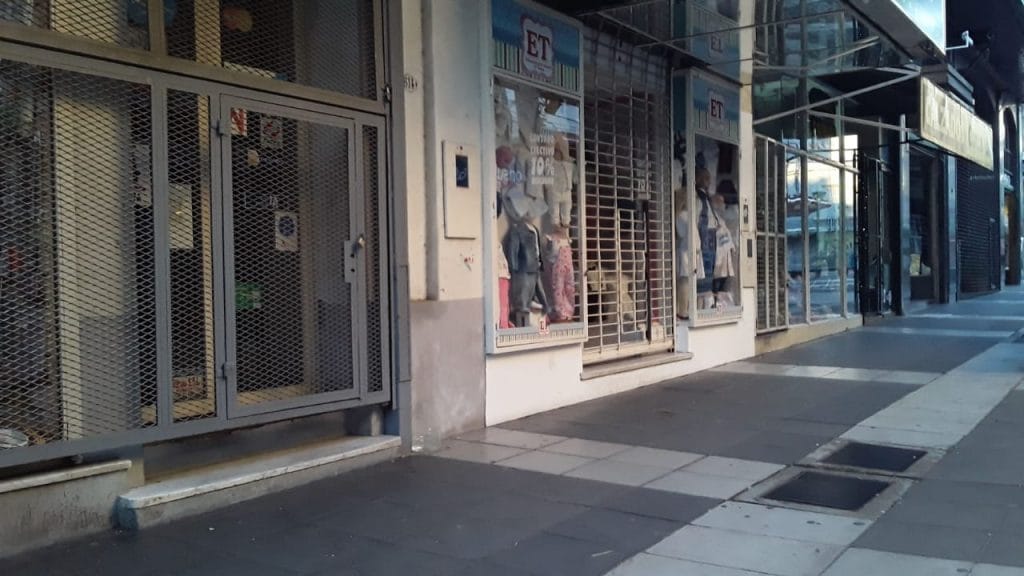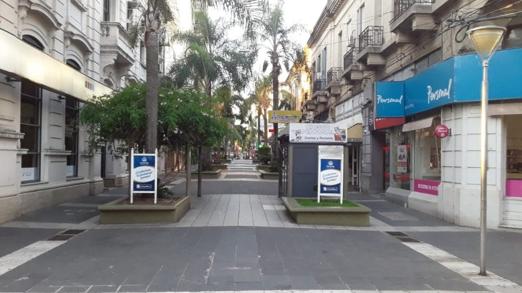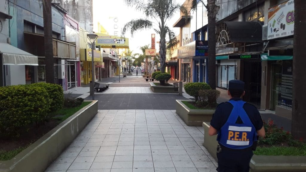 En las imágenes se ve cómo la peatonal está desierta, controlada por policías que permiten una mínima e indispensable circulación no excendente a dos personas con el debido distanciamiento y cuidados higiénicos.