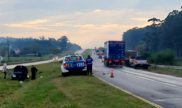 Esta mañana, 9: 45 horas, mientras caía una lluvia intensa en la región, se produjo un despiste y vuelco. El mismo tuvo lugar en la Autovía Nacional Nº 14, Km 298, donde un vehículo que circulaba de norte a sur, perdió el control y volcó sobre el carril central.
