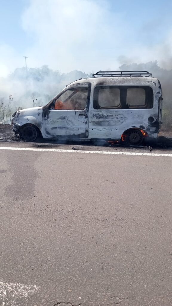 Intervino Bomberos se Ubajay, el vehículo tuvo destrucción total, no hubo corte de tránsito.