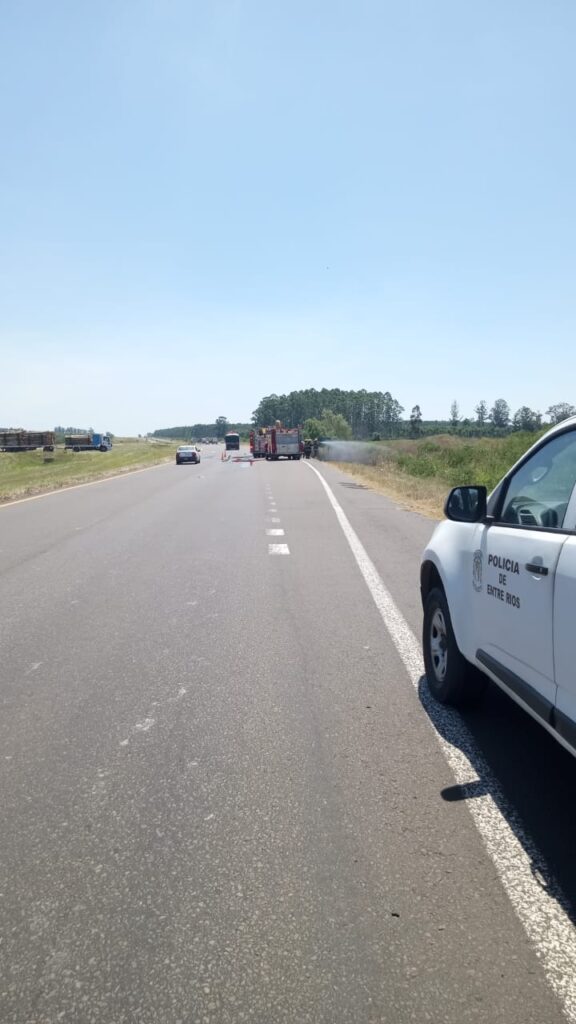 El mismo, se encontraba viajando desde Bs.As hacia Misiones, transitando por km 226, de la Autovía Gral Artigas, (Ruta Nac 14), en sentido de sur a norte , cuando se le empezó a incendiar su rodado, estacionando en la banquina.