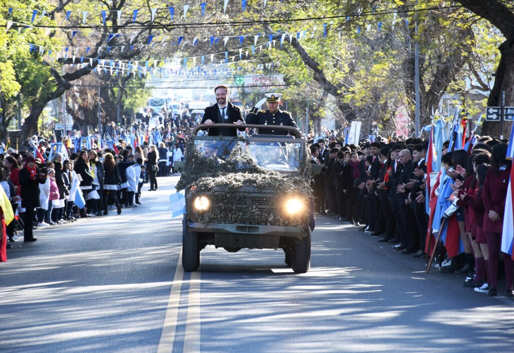 En la mañana de este martes 9 de Julio, Día de la Independencia, se realizó el Desfile Cívico-Militar, el cual estuvo encabezado por el intendente Francisco Azcué y Teniente Coronel Jorge Andrés Camarino, Jefe del Regimiento de Caballería Tanques 6 Blandengues, acompañados por la viceintendente Magdalena Reta de Urquiza; funcionarios de la Municipalidad de Concordia, de organismos provinciales; concejales y representantes de las Fuerzas Armadas y de Seguridad.
