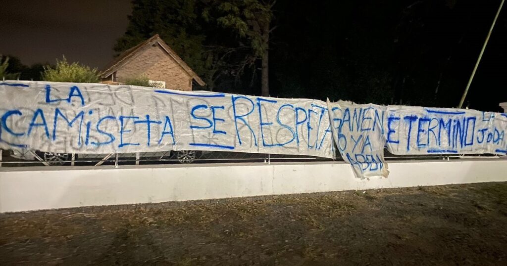 Las banderas habrían sido colgadas durante la noche y las imágenes de las mismas se hicieron virales en X (ex Twitter). Un fuerte clima en la previa del partido, porque este no fue el único hecho fuerte que tuvo lugar el martes: también hubo momentos de tensión en la sede social.