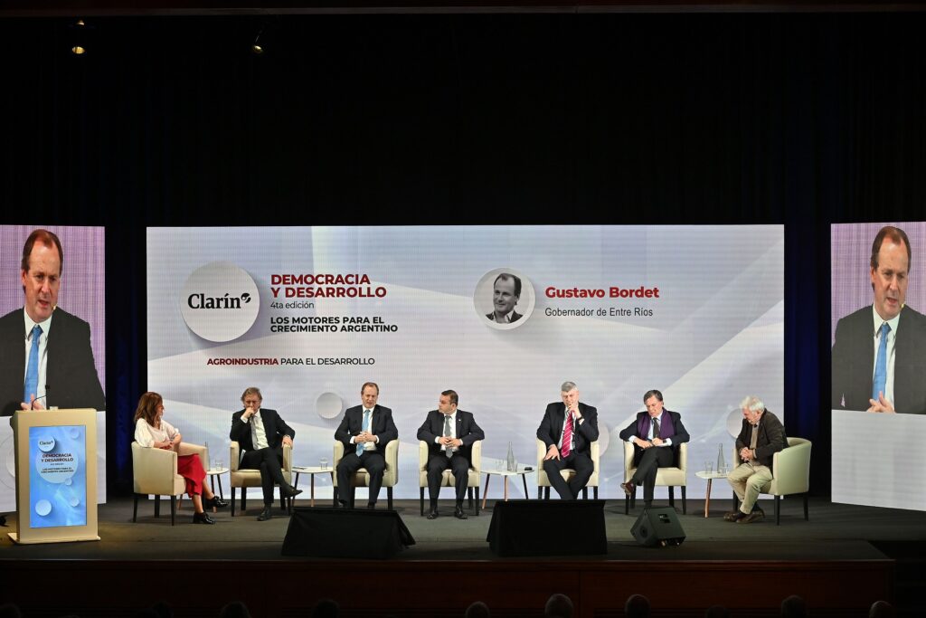 El gobernador Gustavo Bordet participó del ciclo Democracia y Desarrollo organizado por el grupo Clarín. Sostuvo la importancia de “no aumentar las retenciones”, y pidió construir consensos que trasciendan los gobiernos para tranquilizar las variables económicas e impulsar la producción.
