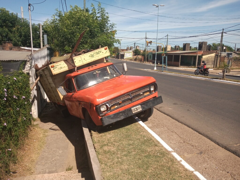 Una camioneta que se encontraba estacionada se quedó sin frenos y se deslizó en la pendiente hasta terminar arriba de la vereda y con la parte derecha de la caja sobre una vivienda.