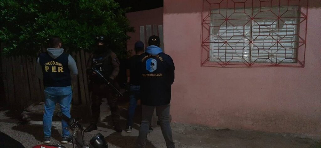 En el marco de una investigación encabezada por la fiscalia de Instrucción Concordia, y tras diversas tareas realizadas por personal de la División Toxicologia, entrada la noche y en horarios cercanos a las 21:00 horas, y contando con la colaboración de la División Toxicologia San Salvador y el grupo táctico de la Jefatura Concordia, se procedió a allanar 2 viviendas ubicadas en calle Perú y Zorraquin del barrio Ex Aeroclub, donde el personal actuante, tras un asalto sorpresivo procedió a detener al Dealer del Barrio conocido como alias Pajarraco junto a otros tres cómplices, dos de las cuales son mujeres. En las viviendas se incautó una gran cantidad de dosis con cocaina, marihuana, elementos de.corte, dinero en efectivo, procesadoras y equipos de comunicación y armas de fuego. Los cuatro detenidos, todos mayores de edad, enfrentan cargos por comercio de Estupefacientes debiendo dar explicaciones en las próximas horas frente a los Tribunales de esta ciudad