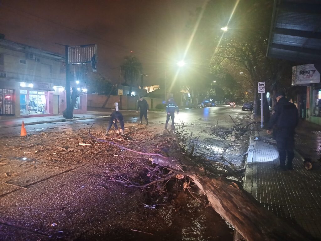 En la madrugada del domingo, siendo las 03:10 hs., en calle Tavella y San Lorenzo, se realizó trabajo en conjunto entre ersonal Policial de Cria.4ta, Secc. Bomberos Zapadores y Personal de Tránsito Municipal, por árbol caído en la via publica, procediendo a cortar el mismo para prevencion de accidentes.