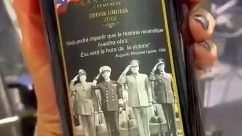 Los vinos son de la cepa Carmenere, y la caja de seis unidades se vende por redes sociales a 38.000 pesos chilenos. La etiqueta de la botella dice “50 años de la Liberación Nacional” y aparece el Ángel de la Libertad, símbolo de la dictadura militar, que fuera acuñado en las monedas de 10 pesos. También tiene una frase sobre Pinochet: “Nada podrá impedir que la historia reivindique nuestra obra. Esa será la hora de la victoria (Augusto Pinochet Ugarte)”.