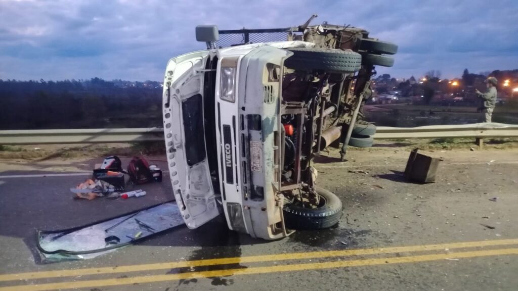 El camión circulaba en sentido Norte hacia el Sur, cuando, por circunstancias que aún se están investigando, impacta de frente con el auto. Tras el choque, el camión quedó volcado sobre su lateral y montado sobre el guardarrail.