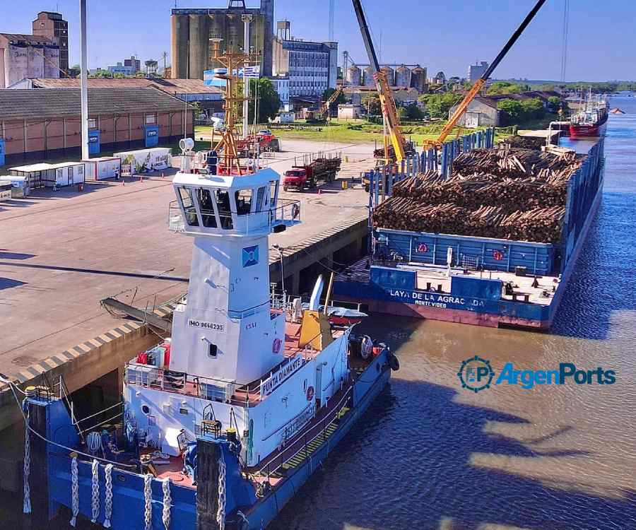 El pasado lunes ingresó al puerto el remolcador Punta Diamante con la barcaza Playa de la Agraciada, ambos de bandera uruguaya, para realizar un embarque de exportación de 5.000 toneladas de troncos de eucalipto con destino a la terminal portuaria Punta Pereyra, en la República Oriental del Uruguay.