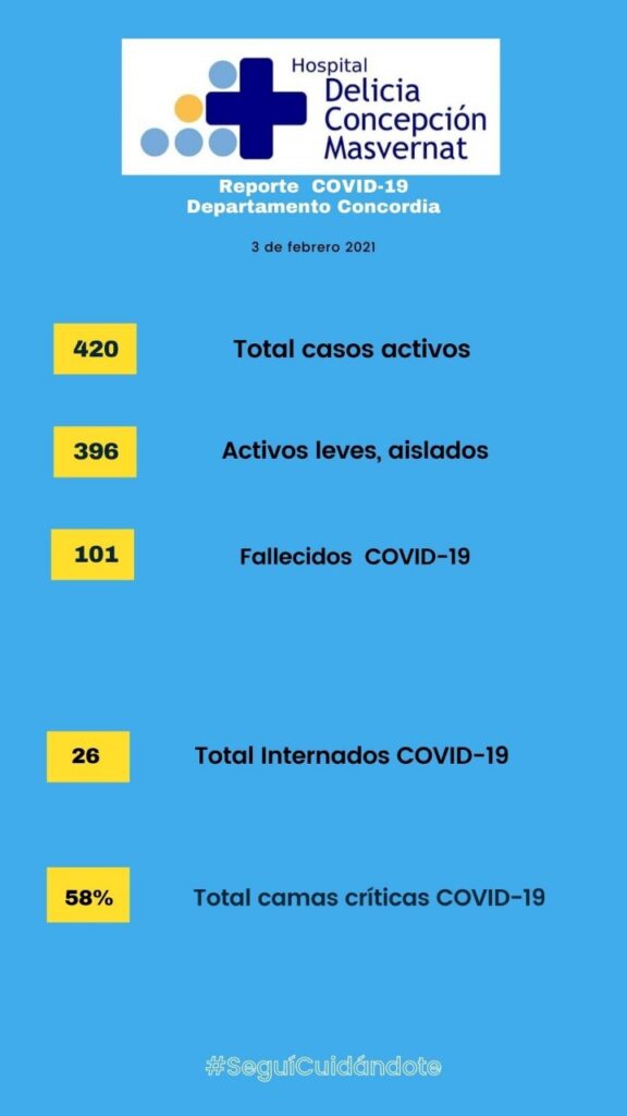 En virtud de los datos reportados al 3 de febrero de 2021 por el área de Vigilancia Epidemiológica del Ministerio de Salud, en Entre Ríos se han sumado 284 casos de Coronavirus.