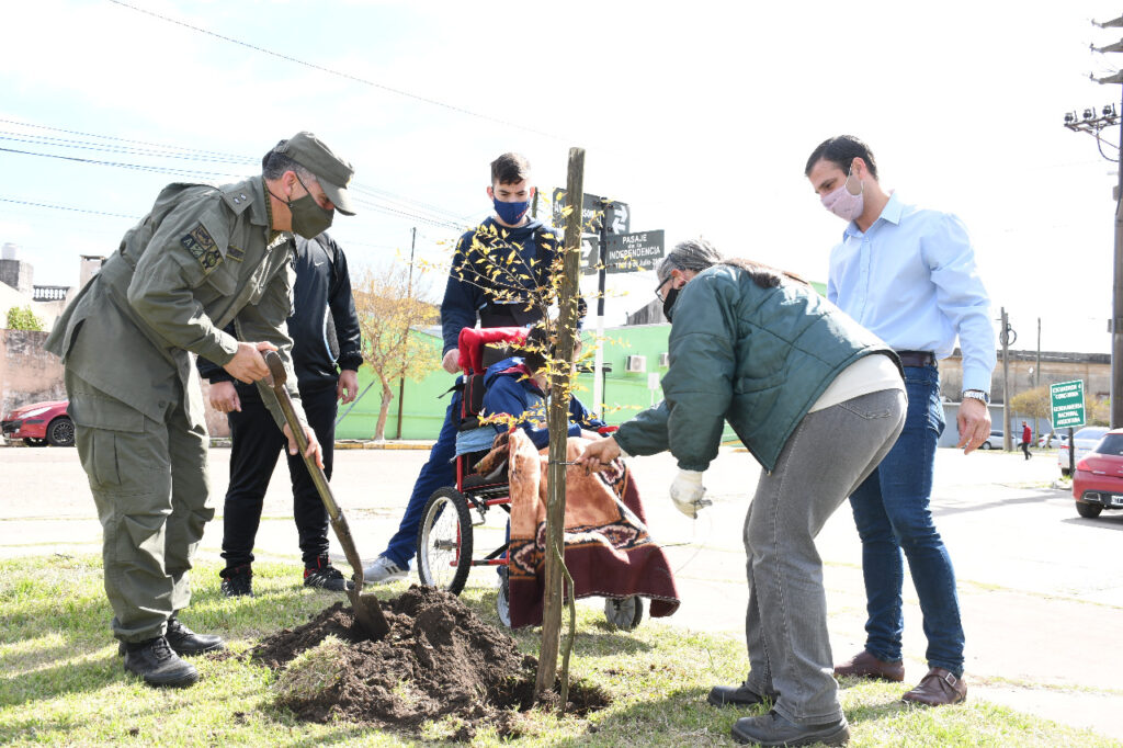 “El Municipio tiene un Plan de Arbolado Urbano, que se lleva adelante desde la Dirección de Parques y Jardines de la Secretaría de Desarrollo Urbano, y ellos brindaron la colaboración de seis ejemplares de árboles autóctonos que se plantaron en la Plazoleta frente a la sede de Gendarmería”, detalló Armanazqui.