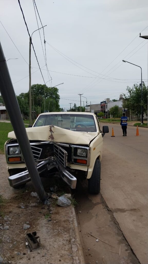 Una camioneta marca Ford F 100 , conducida por un masculino de 24 años, circulaba por calle Concejal Veiga en sentido único Norte-Sur, y por circunstancias a establecer, impactó contra una columna de alumbrado público.