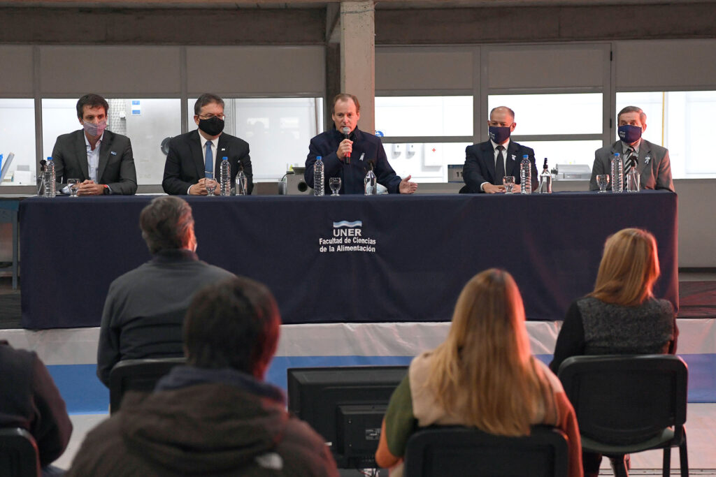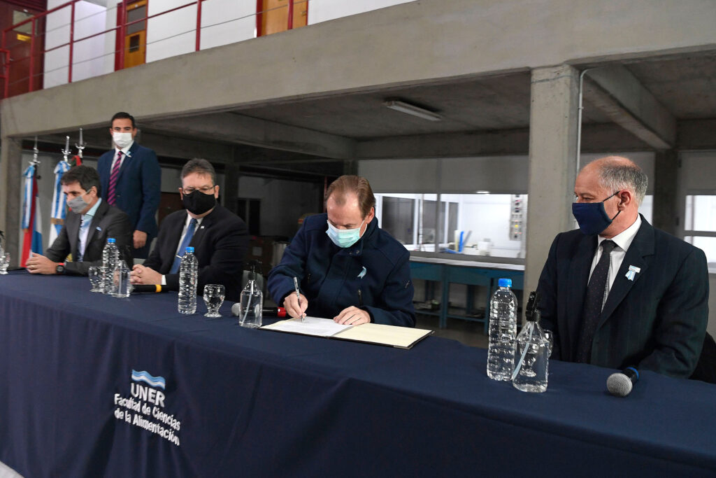 A su turno, el rector de la UNER, Andrés Sabella, señaló que la firma concretada este viernes “resume cinco años de trabajo”, y que el proyecto surgido en 2015 contempla el vínculo de las “escuelas técnicas universitarias articuladas con universidades nacionales”, dado que “el progreso del país va de la mano de la educación y fundamentalmente del desarrollo de las ingenierías”. “Por eso esta escuela técnica se implanta en esta ciudad y en esta Facultad de Alimentos”, resaltó.