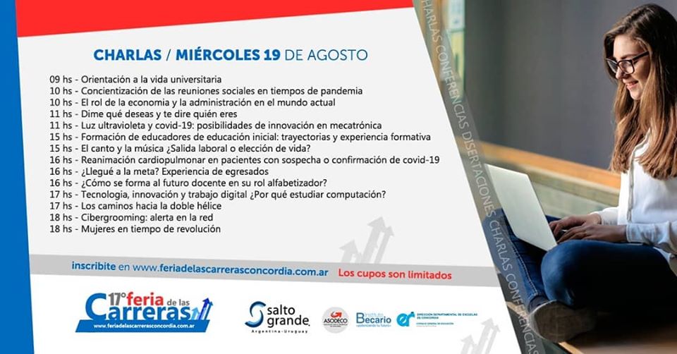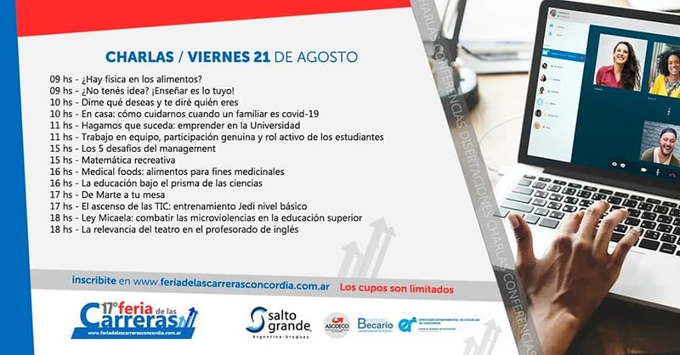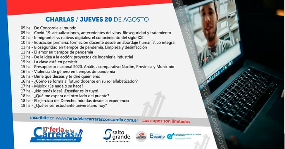 Los días 19, 20 y 21 de agosto, se llevará a cabo la XVII Feria de Carreras, en donde se mostrarán las propuestas educativas de nivel terciario y universitario de una forma 100% virtual, bajo el lema “Yo estudio en Concordia”.