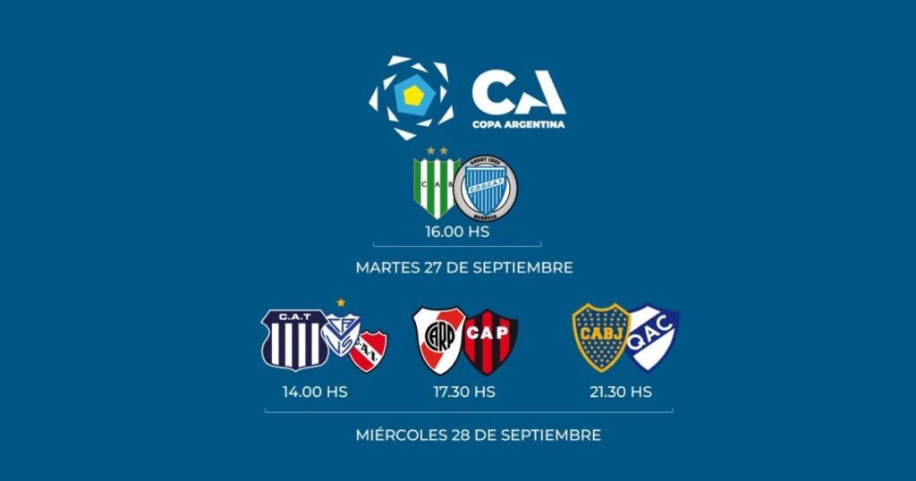 La Copa Argentina oficializó este martes los días, horarios y sedes de los partidos de cuartos de final, que se disputarán entre el martes 27 y el miércoles 28 de septiembre: en plena fecha FIFA. A la espera de que se confirme el último integrante de esta instancia (el jueves se enfrentan Independiente y Vélez por el último cupo), los otros tres encuentros ya estan confirmados.