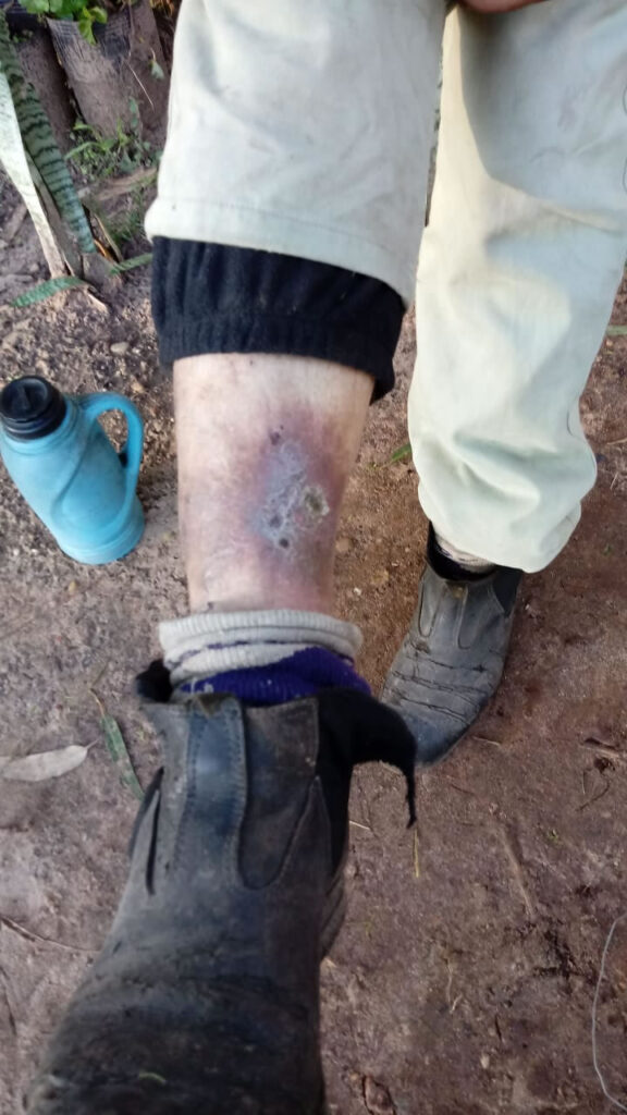 En dicho lugar se encuentra una construcción antigua y en mal estado de mantenimiento, sin agua y sin condiciones mínimas de habitabilidad, en donde trabajaban desde 2005, un capataz, una señora y su hijo de 20 años. Todos ellos se encontraban en estado de inanición y con un estado de salud deteriorado al momento de la denuncia. “Se están asesorando con el Doctor Giampaolo” confirmó el coordinador y agregó que el Intendente Almada es el encargado de la inasistencia social y de salud de estas personas.