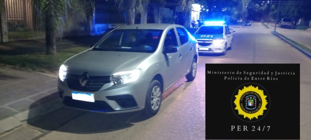 anoche en comisaría Décima se hace presente un ciudadano, quien manifestó que su nieto junto a otro joven, aprovechando que le sacó la llave de su vehículo marca Renault, modelo Logan, color gris, se lo sustrajo cuendo se encontraba estacionado en calle M. Bernard, radicando denuncia penal. Se procedió a irradiar mediante Sala de Comando a toda la filial, siendo inmediatamente localizado el vehículo en Av. Chajarí entre Coldaroli y Liniers, y sus ocupantes fueron detenidos cuando intentaban huir, resultando ser los mencionados menores. Se comunicó al Agente Fiscal Núñez, disponiendo secuestro y entrega del vehículo al denunciante y el traslado de los menores a Comisaría del menor a disposición de sus padres.