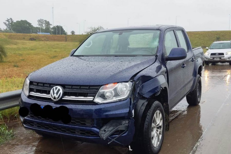 Consistió en un despiste de una camioneta, marca Volkswagen, modelo Amarok, que era conducida por un ciudadano de 50 años de edad. El rodado circulaba en sentido Sur-Norte y por una mala maniobra que habría sido protagonizada por un camión, la camioneta tomó un charco de agua y salió de la cinta asfáltica en sentido Oeste colisionando un cartel y el guardarrail. Luego de esto el conductor logró controlar el utilitario finalizando el recorrido sobre el carril Norte-Sur, no sufrió lesión alguna, solo daños materiales. Intervino por razones de jurisdicción personal de la Comisaría San José, habiéndose iniciado actuaciones simples.
