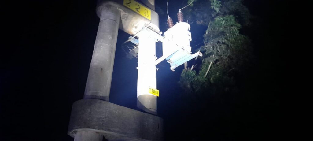 El mismo se realizó en zona de campaña y transitando por la Autovía G. Artigas Km-286, fue que, al alumbrar con reflectores en la oscuridad pudieron observar sobre una torre para transformadores a dos masculinos con herramientas varias que se encontraban robando un transformador eléctrico,.