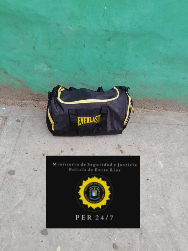El mismo tenía en su poder un bolso que cumplía las características brindadas por el damnificado. Se comunicó el hecho a la fiscalía de turno, a cargo del Dr. Martín Núñez, quien dispuso la aprehensión del masculino, y el secuestro y entrega del bolso marca Everlast.
