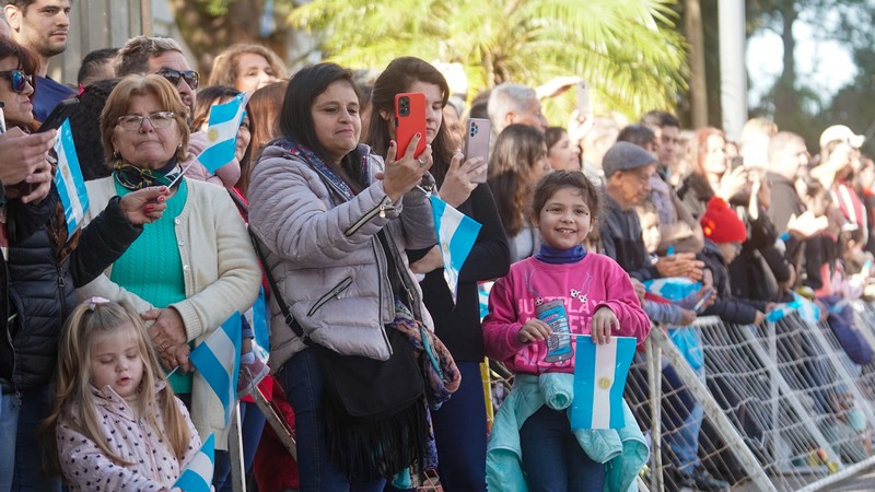 Del desfile participaron instituciones, organismos gubernamentales, dependencias municipales, escuelas primarias y secundarias, centros de formación profesional, organizaciones sociales, delegaciones culturales, deportivas y sociales, agrupaciones tradicionalistas y folclóricas y fuerzas de seguridad.