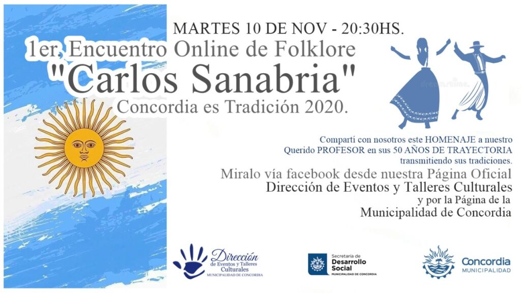 El próximo martes 10 de noviembre, Día de la Tradición, la Dirección de Eventos Culturales y Talleres Barriales de la Secretaría de Desarrollo Social de la Municipalidad realizará un evento virtual a través de las redes sociales, para celebrar la fecha. El encuentro virtual, del que participarán diferentes artistas de distintas disciplinas, lleva el nombre de “Carlos Sanabria”, en homenaje a los 50 años de trayectoria y labor permanente por la difusión de nuestras tradiciones y nuestra cultura.