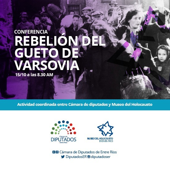 Este viernes, desde las 8.30, la Cámara de Diputados de Entre Ríos y el Museo del Holocausto de Buenos Aires llevarán adelante una actividad de capacitación sobre la Rebelión del Gueto de Varsovia. Será a través de la plataforma Zoom, con inscripción previa, para docentes y público en general. Fue declarada de interés educativo mediante la Resolución 3.103 del Consejo General de Educación (CGE).