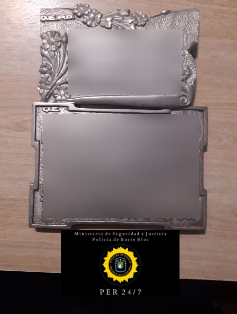 Rápidamente al dirigirse el móvil Policial logra visualizar a los dos masculinos que eran seguidos por el Uniformado; siendo ambos interceptados e identificados, quienes al exhibir lo que tenían en el interior de su mochila llevaban 2 placas de bronce, que por el epitafio resultaría ser de alguna tumba y las cuales no supieron argumentar su tenencia.