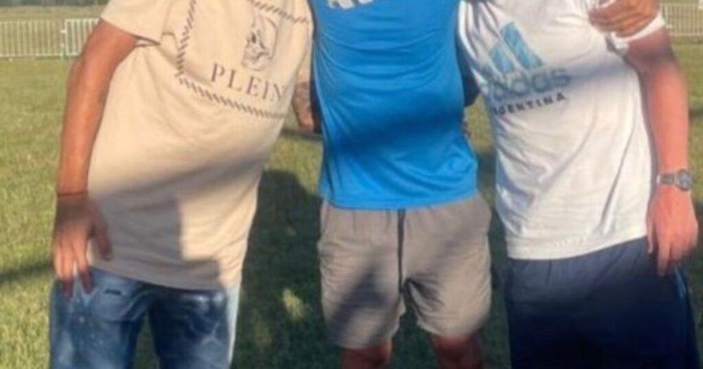 El ex Selección vive en el mismo predio (como otros tantos jugadores) y fue la persona que les dio la bienvenida al barrio. Primero se fundió en un abrazo con Angelito, compinches y canallas, y luego hubo saludo con Leo.