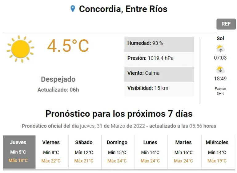 El frío polar se hace sentir en el último día de marzo. Las temperaturas bajaron considerablemente en Entre Ríos, con temperaturas mínimas que se ubican entre los 4 y 7 grados, pero con sensaciones térmicas más bajas.