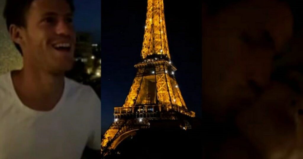 Su pareja, Eugenia De Martino, quien lo acompaña en su aventura por el Grand Slam, subió unas historias a Instagram en la que ambos cerraron un día de la mejor manera: el Peque sonriendo frente a un show de luces de la torre Eiffel y besando en el cachete a su novia. “Beso de buenas noches por acá”, escribió ella en el posteo.