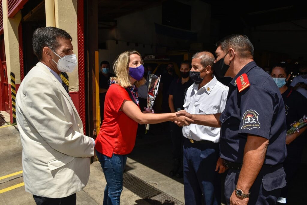 La vicegobernadora Laura Stratta junto a la ministra de Gobierno Rosario Romero y el ministro de Producción Juan José Bahillo e integrantes del Gabinete provincial, visitaron el Cuartel de Bomberos Voluntarios de Concordia.