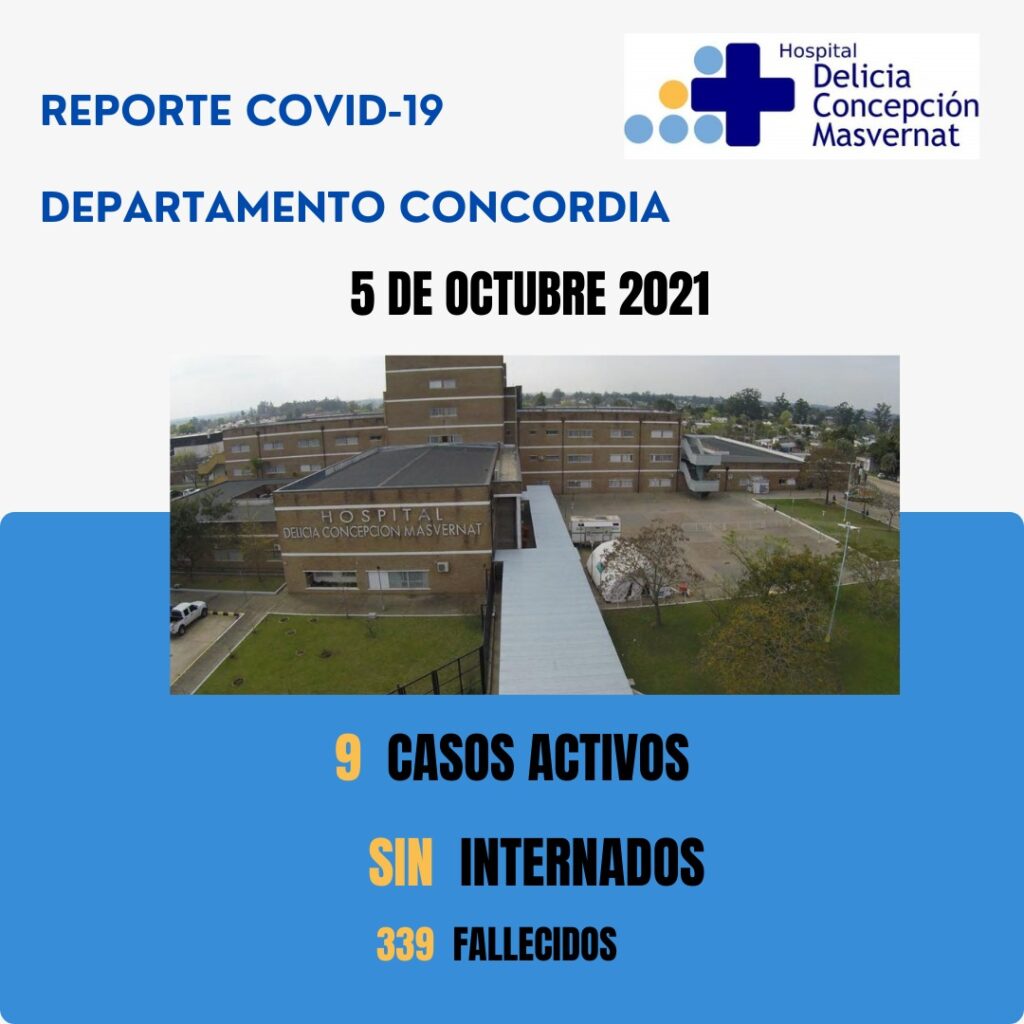 Según el reporte enviado por el área de prensa del Hospital Masvernat, hoy martes 5 de Octubre , hay 9 casos activos de Covid-19, de los cuales ninguno está internados . El número de fallecidos en nuestra ciudad desde el comienzo de la pandemia asciende a 339